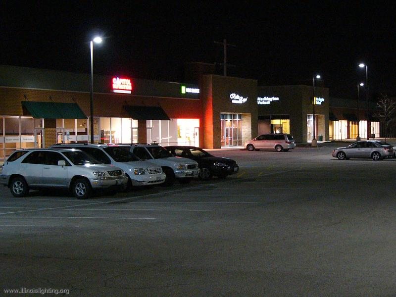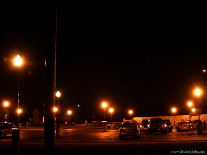 The recessed lamps, with a reflector to send the light which the lamps emit in the wrong directions down to the desired ones, are much more efficient than the two types above, and can use lower wattage lamps to achieve the same area illumination levels. They can still emit bright light up to almost horizontally, though; this wasted energy can cause unsafe and unsightly glare.